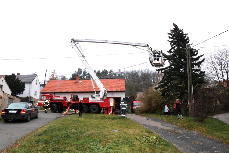 v Třebonicích. Jedle byly v minulosti ozdobeny pouze světelnými řetězy,