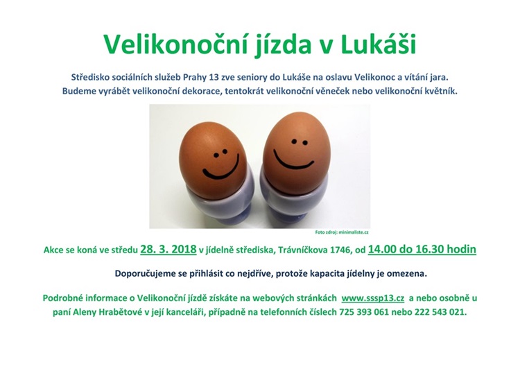 Středisko sociálních služeb Prahy 13 zve seniory do Lukáše na „Velikonoční jízdu“.