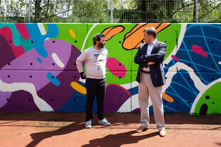 velkoplošné malby přizval další kolegy a zdi kolem sportoviště se tak staly i