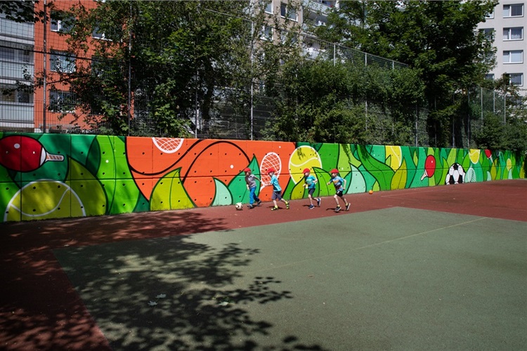 umístit velkoplošné malby. Přírodní motivy v kombinaci se sportovními