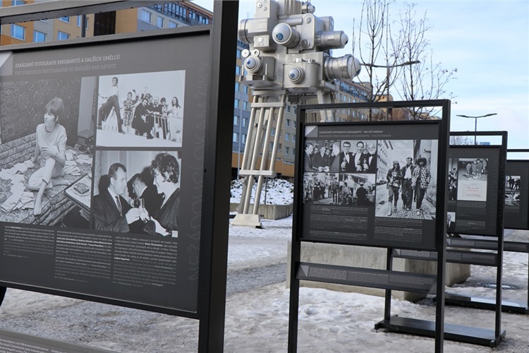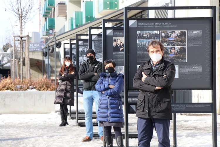 venkovní výstava Nežádoucí okamžiky na korzu v Nových Butovicích. Výstava se zaměřuje na manipulaci a cenzuru