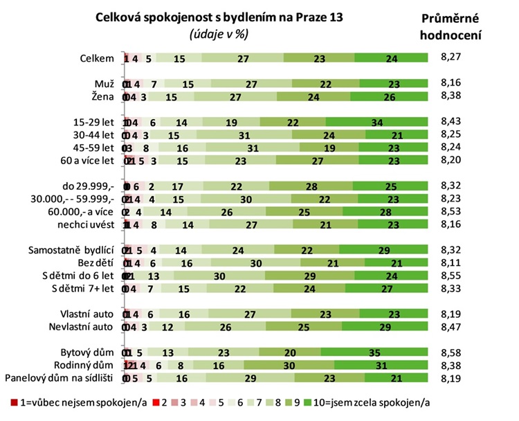 vyšlo, že jsou občané primárně s životem na třináctce spokojení. U 89 % obyvatel Prahy 13 převažuje celková