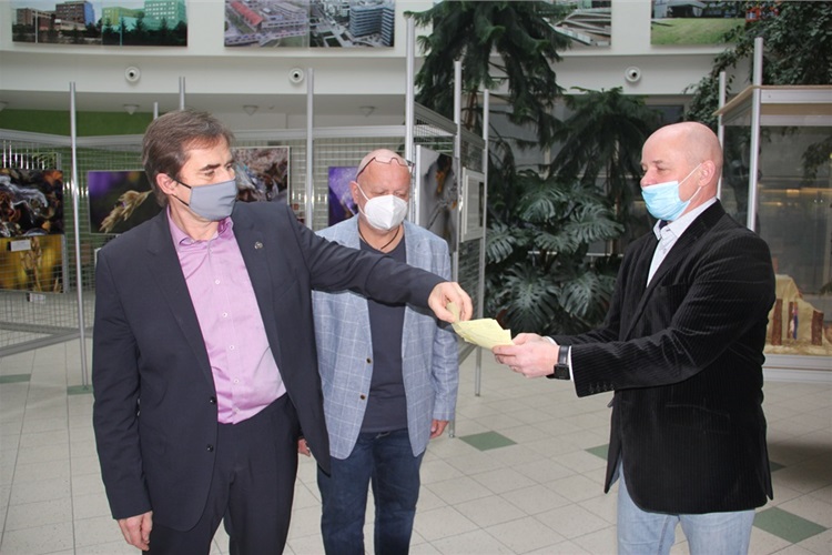 spolu s autorem výstavy Milanem Blšťákem starosta David Vodrážka a místostarosta Petr Zeman.