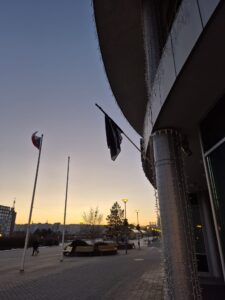 Černý prapor před budovou radnice symbolizuje smutné rozloučení s jedním z našich dlouholetých kolegů, jehož přítomnost nám bude velmi chybět.