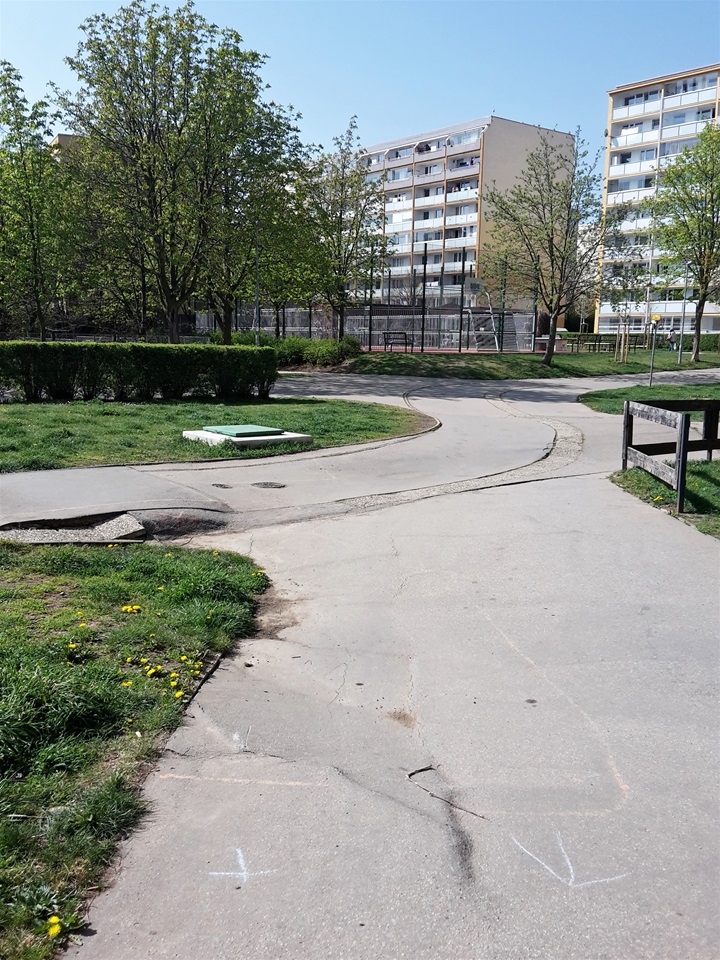 živičný povrch, který hojně využívaly děti pro nácvik svých dovedností na