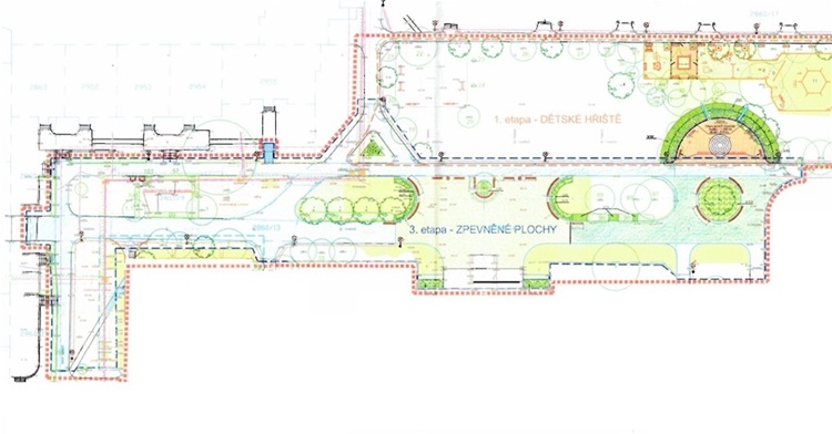 plocha, dojde k odstranění kruhových záhonů v havarijním stavu a barevně bude