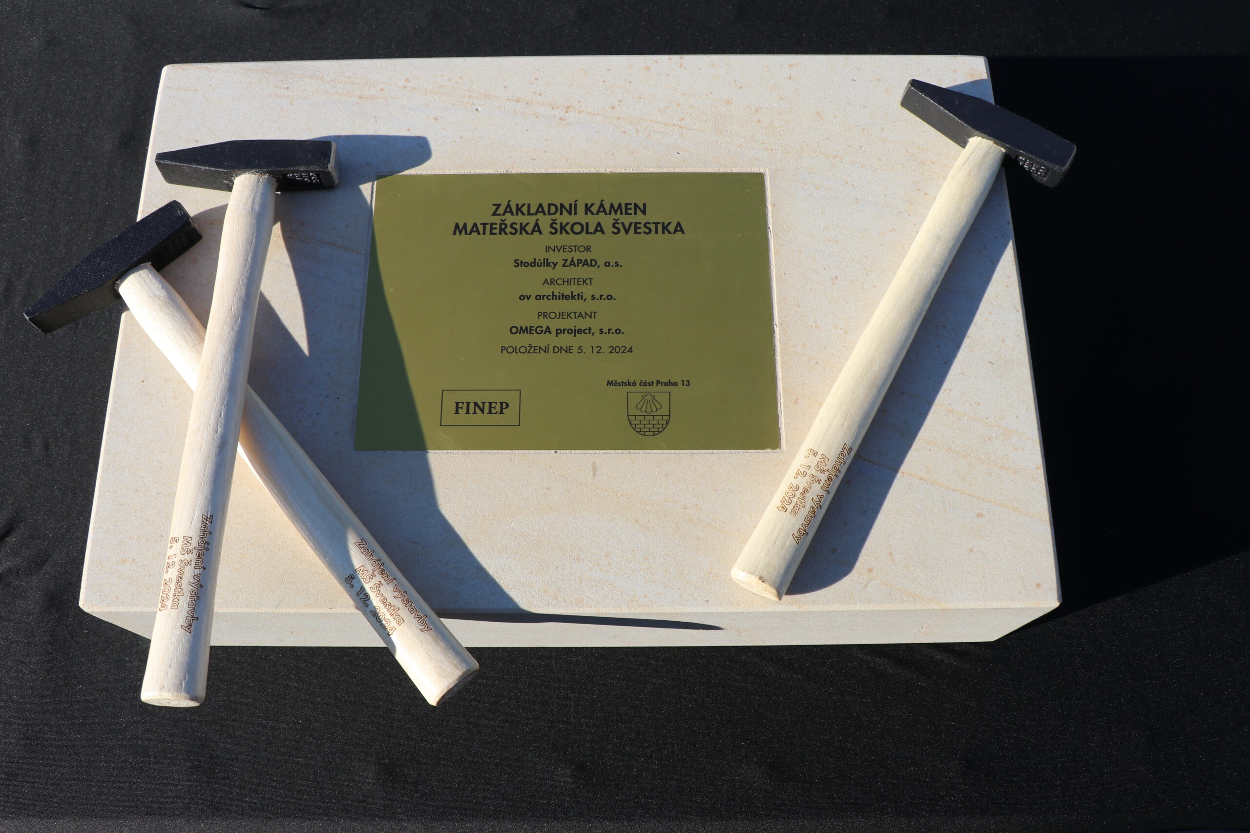 Starosta Prahy 13 David Vodrážka spolu s primátorem hlavního města Prahy Bohuslavem Svobodou, místostarostkou Marcelou Plesníkovou a zástupcem společnosti FINEP položili základní kámen stavby nové mateřské školy Švestka v Praze 13. Developer školku postaví na vlastním pozemku na své náklady a po dokončení ji předá městské části Praha 13 do běžného užívání.