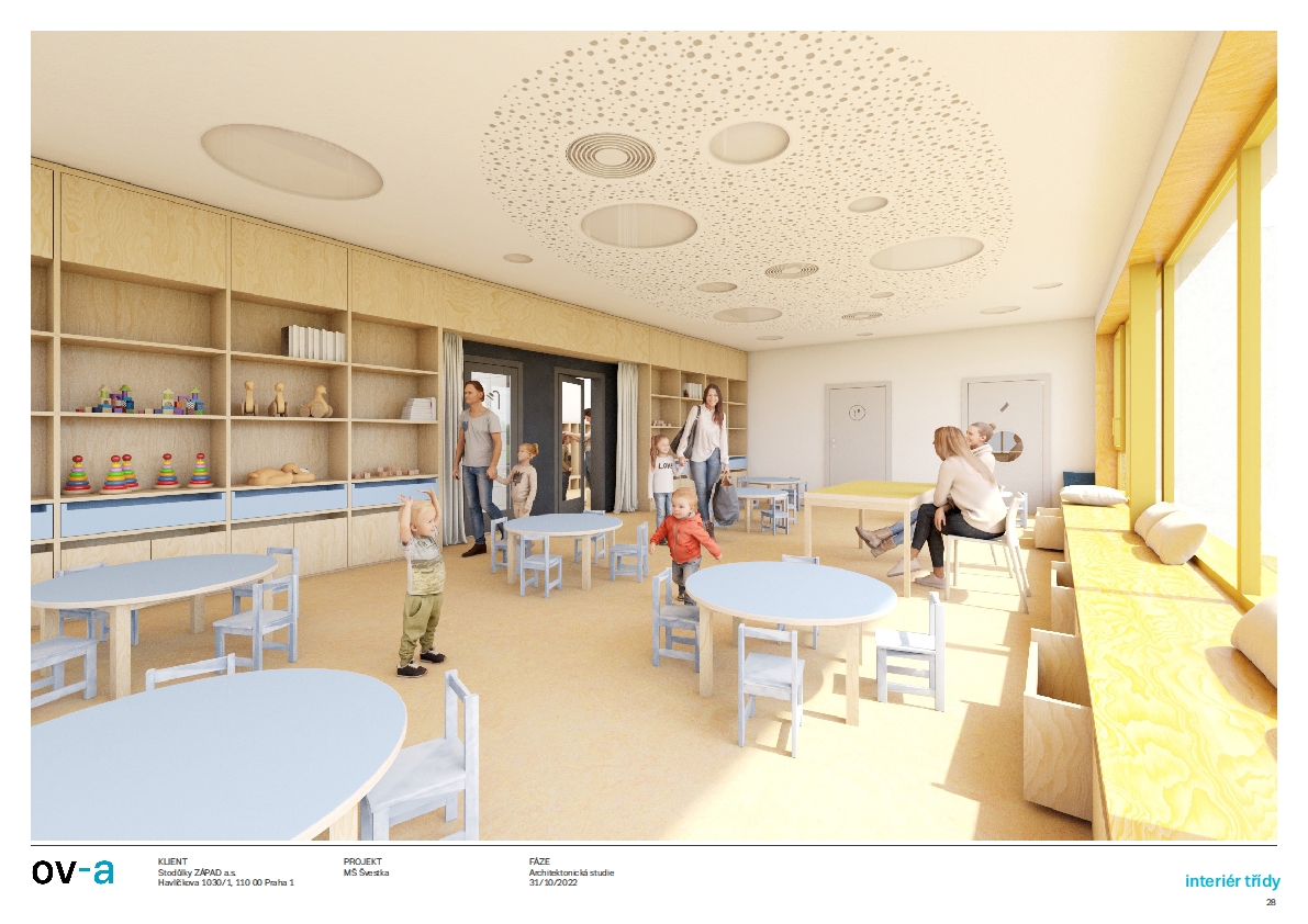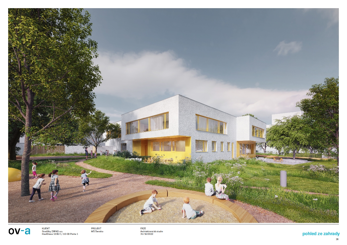 Jedná se o zcela novou mateřskou školu s názvem Švestka se šesti třídami, jejíž celková kapacita pojme cca 150 dětí. Dvoupatrová moderní budova bude splňovat všechny nároky na kvalitní předškolní vzdělávání, každá třída bude vybavena vlastním sociálním zázemím a chybět samozřejmě nebude ani zahrada s hřištěm a zelení. Stavba by měla být dokončena do dvou let.