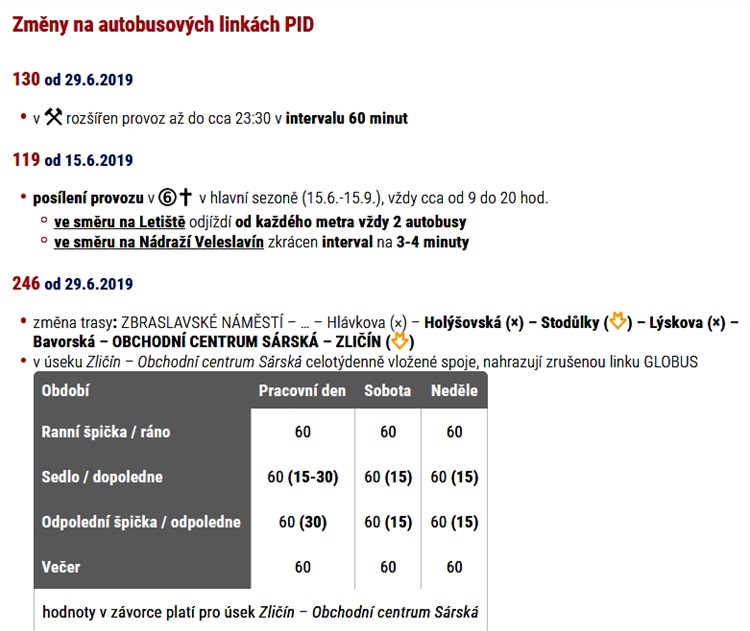 Městská část Praha 13 uvítala rovněž změnu trasy autobusové linky 246, ke které dojde od 29. června 2019. V úseku ze Zbraslavi do Řeporyjí pojede stejně jako nyní, ale ze zastávky Hlávkova bude prodloužena na Zličín, kam dojede po stejné trase jako linka 130 – okolo stanice metra Stodůlky a hypermarketu Globus. Linka 246 tedy již nebude zajíždět ke stanici metra Luka, kam bude i nadále možné dojet s jedním přestupem na linky 174, 301 a 352 v zastávce Řeporyjské náměstí. Novinkou na linkách 130 i 246 bude zastávka Holýšovská, která se bude nacházet u křižovatky ul. Jeremiášovy a Jáchymovské, v blízkosti ZŠ Trávníčkova a hypermarketu Makro.